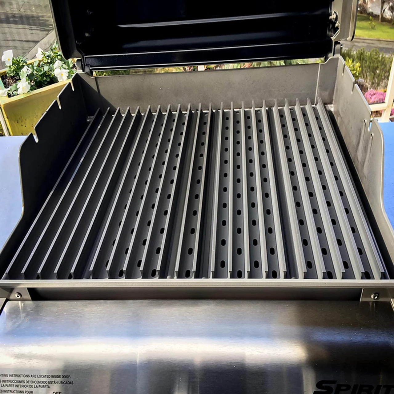 GrillGrates are the perfect replacement for the Weber Spirit 300 and other medium sized gas grills. GrillGrates will make your old gas grill better than new. They are interlocking panels that fit across the surface of the grill. They can replace your existing grates or sit on top. GrillGrates produce juicier and more tender food. Made of hard anodized aluminum, they never rust. Every set comes with a GrateTool which is part fork, part spatula that fits between the rails to get under your food and lift it without scraping.
