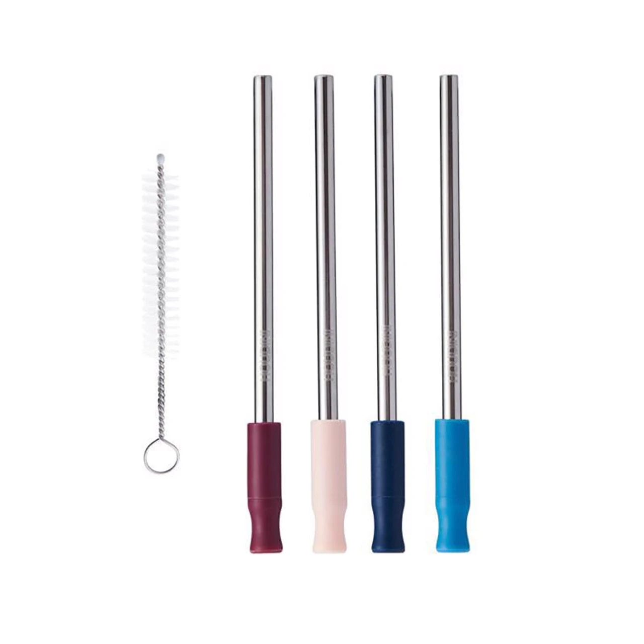 Set of 4 Assorted Colored Straws Stainless Steel Straws with food grade silicone tip for comfortable sipping. Straws measure 5.5 inches in length. Cleaning brush included. Dishwasher safe.