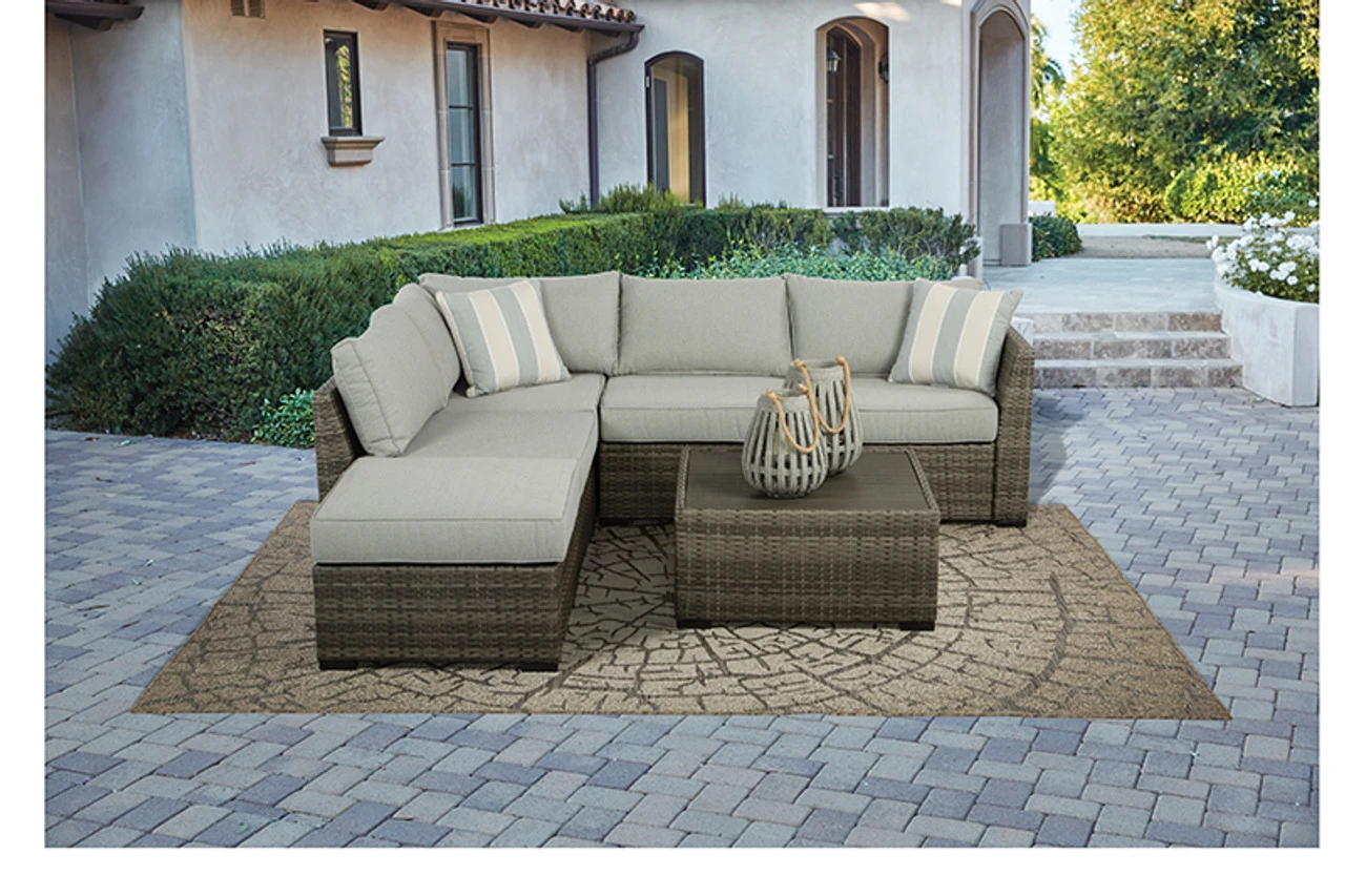 Turn your outdoor space into a sweet retreat with this outdoor sectional. High style crafted for low-maintenance living, this decidedly clean and contemporary outdoor furniture set entices in an easy-breezy gray resin wicker over a rust-free aluminum frame for an upscale aesthetic that’s downright durable. Wrapped in high-performing Nuvella® fabric, the plush cushions are indulgently comfortable yet so carefree.