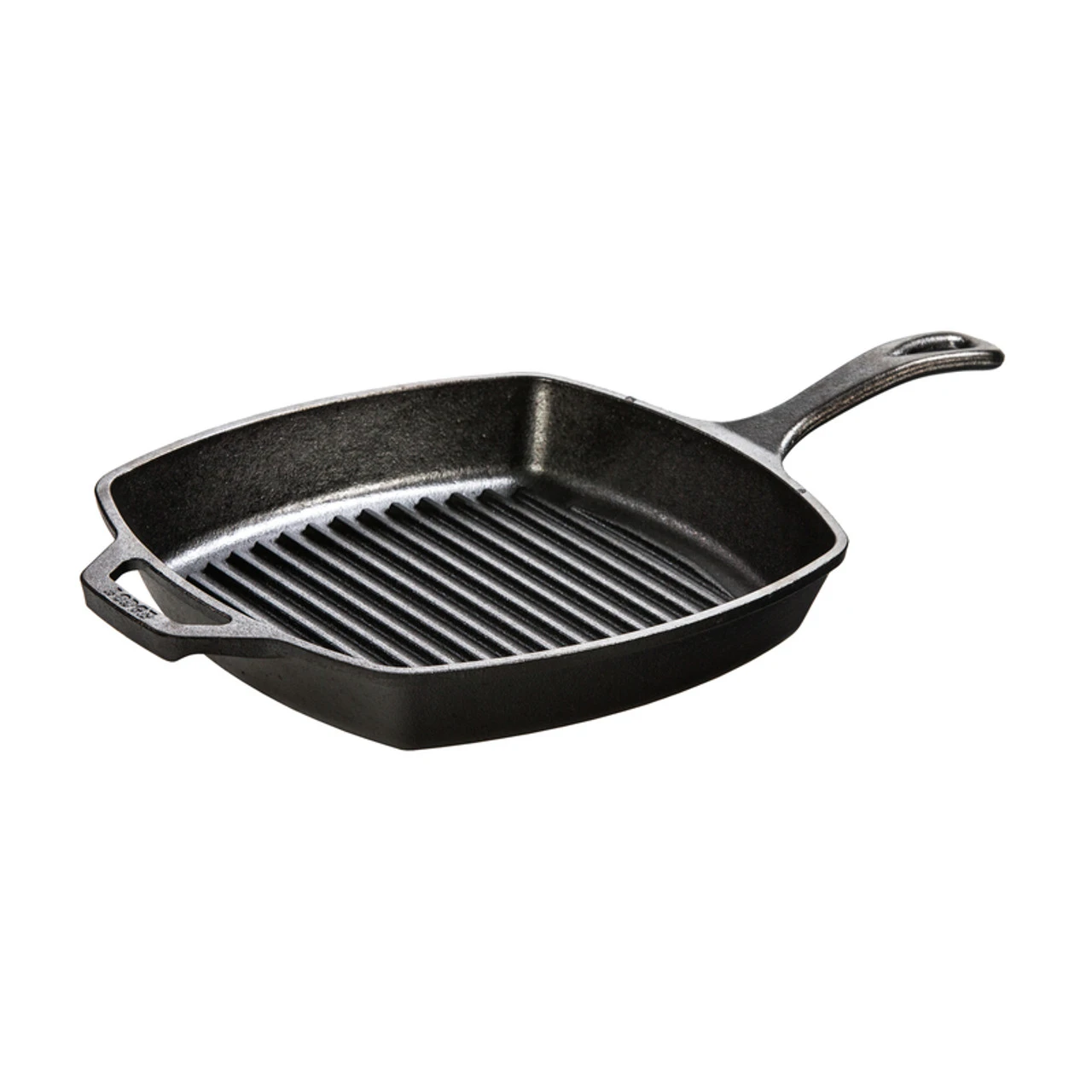 The ribs of the Lodge square grill pan allows fat to drain from food while also searing tantalizing grill marks onto meats, vegetables and paninis.