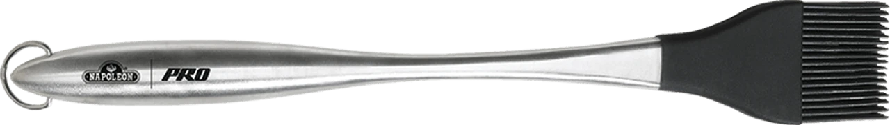 Napoleon’s Stainless Steel Silicone Brush is a great tool for basting your roasts or finishing that meal with the perfect amount of delicious barbecue sauce. The heat resistant silicone bristles hold juices and sauces perfectly. The Silicone Brush is easy to clean in the sink, or just throw it in the dishwasher. It is more hygienic than using a haired brush. The haired brushes are usually made from boar or horse-hair and will trap sauces, bacteria, and oils deep inside the bristles, even after cleaning. Not to mention they shed. But on the Napoleon Stainless Steel Silicone Brush, baste away to your heart’s content and all the bristles stay where they are. The Silicone Brush has a convenient ring to hang it out of the way on your grill, and it’s even short enough to store in your cooking-tool drawer inside. This Silicone Brush is the perfect addition for anyone who likes to be saucy.
