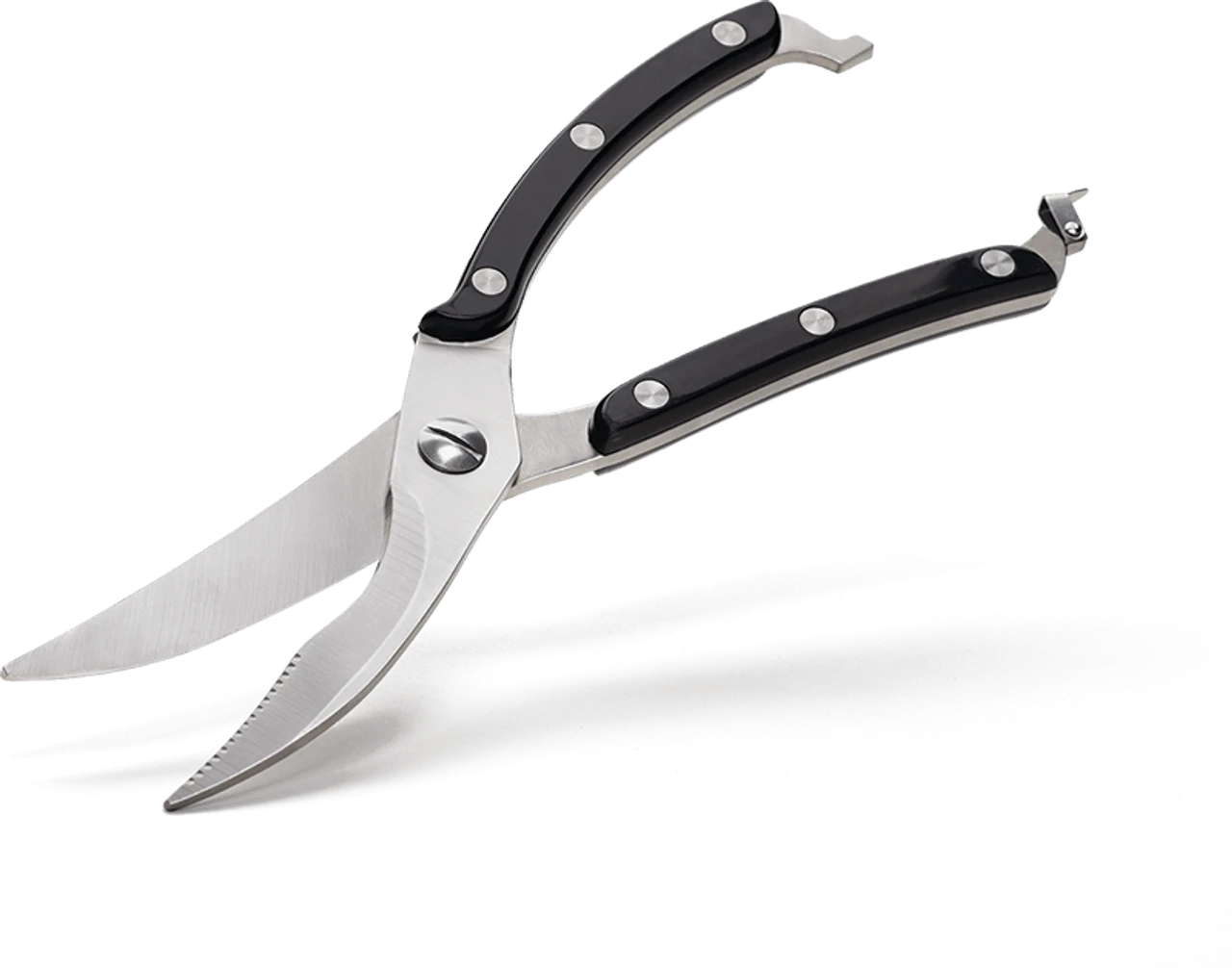 A serious grilling master’s must-have tool, the PRO Poultry Shears by Napoleon are built to easily cut through poultry, ribs, crab and other tough meats and bone. Easy to use, these shears have spring tension for improved control and comfort while in use. A fully stainless steel tang and blades make sure that these shears will stand up to whatever you can throw at them. The handles are riveted and provide a comfortable left or right-handed grip. A Safety latch on the handles ensures the blades stay locked closed when not in use. For best performance, we recommend that you wash these Professional Poultry Shears by hand. Efficient food prep is within your grasp with these Professional Poultry Shears.