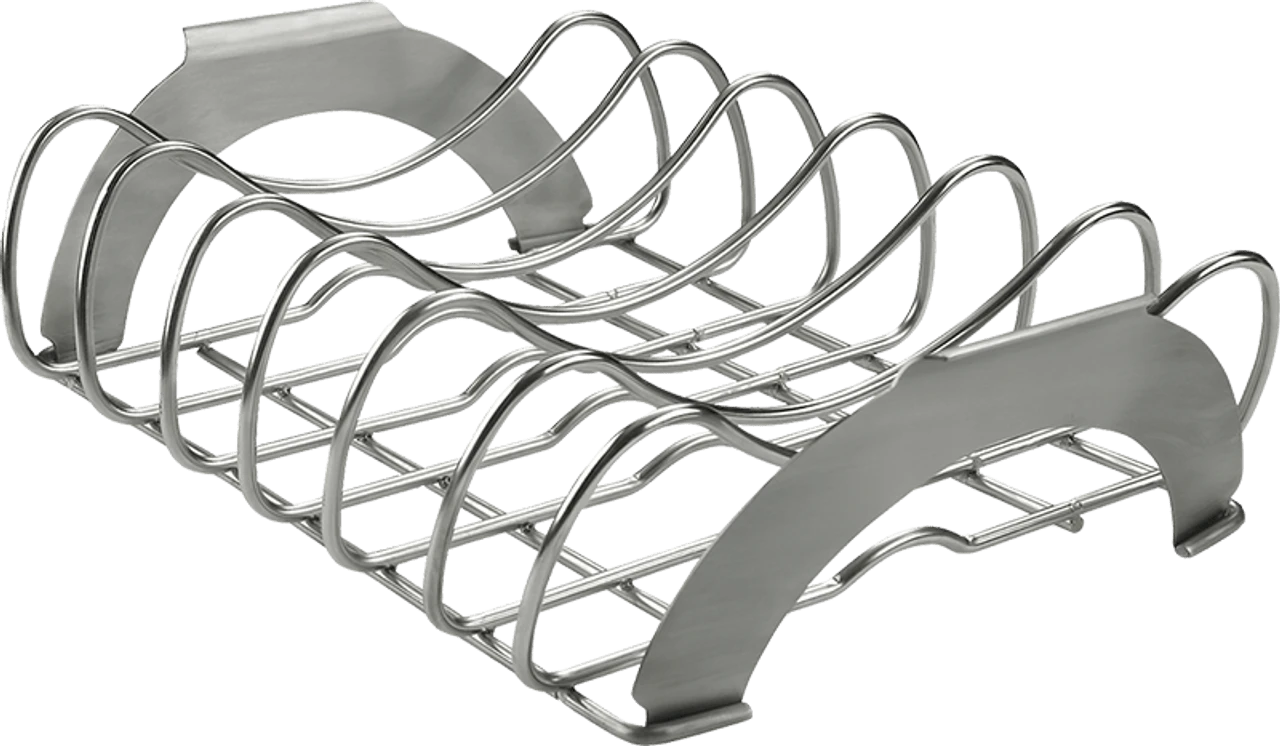 The Napoleon PRO Series Stainless Steel Rib/Roast Rack is ideal for every grill master. A two-in-one product that can be used in a gas or charcoal barbecue grill, the stainless steel construction is durable and easy to clean. This rack helps to efficiently roast and smoke ribs by standing racks of ribs up and providing the ideal surface area for smoke penetration. Use the rack to hold roasts, chickens and turkeys for the perfect roasted dinner. Heat can reach everywhere so there is no soggy or undercooked piece of meat. The rack holds food and can be placed over a drip tray, roasting pan or baking sheet to catch drippings for fantastic gravies. This Rib and Roast Rack fits all full sized Napoleon Barbecue Grills and Napoleon Charcoal Kettle Barbecue Grills. Integrated handles make moving to and from the barbecue safe and easy. Please remember that the stainless steel will get hot and needs to be handled with heat resistant gloves. Whether you are refining your favorite cooking techniques on the barbecue or learning an entirely new way of preparing a meal, Napoleon has the barbecue accessories you need. Clever, multifunctional and easy to maintain, every kitchen benefits from the addition of a Napoleon barbecue accessory.