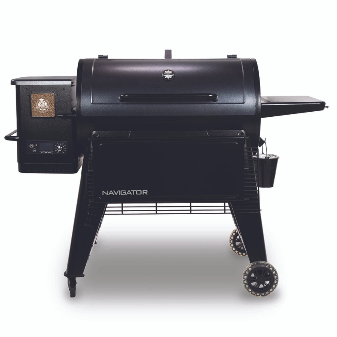 The Pit Boss 1150 Navigator Series Grill features the real-wood flavor of an outdoor cooking adventure. With advanced grilling technology, premium gauge stainless-steel builds, and 100% all-natural hardwood pellet fuel, enjoy Bigger, Hotter, Heavier features – that can only come from a Pit Boss grill. The 1150 offers 8-in-1 cooking versatility, to smoke, bake, braise, roast, grill, barbecue, char-grill, and sear – all in one. Dial in heat ranging from 180° to 500°F and achieve instant direct or indirect heat using the innovative slide-plate flame broiler. Then, use the digital control board and stainless-steel meat probes to track temperatures and set it and forget it, while the Navigator does all the work for you. Additional features of the Pit Boss 1150 Navigator Series grill include a large hopper capacity, large pellet view window, pellet door cleanout, reinforced legs, high-temperature powder coat finish, convertible front-to-bottom built-in tool hooks, locking caster wheels, and the Pit Boss best-in class 5-year warranty.