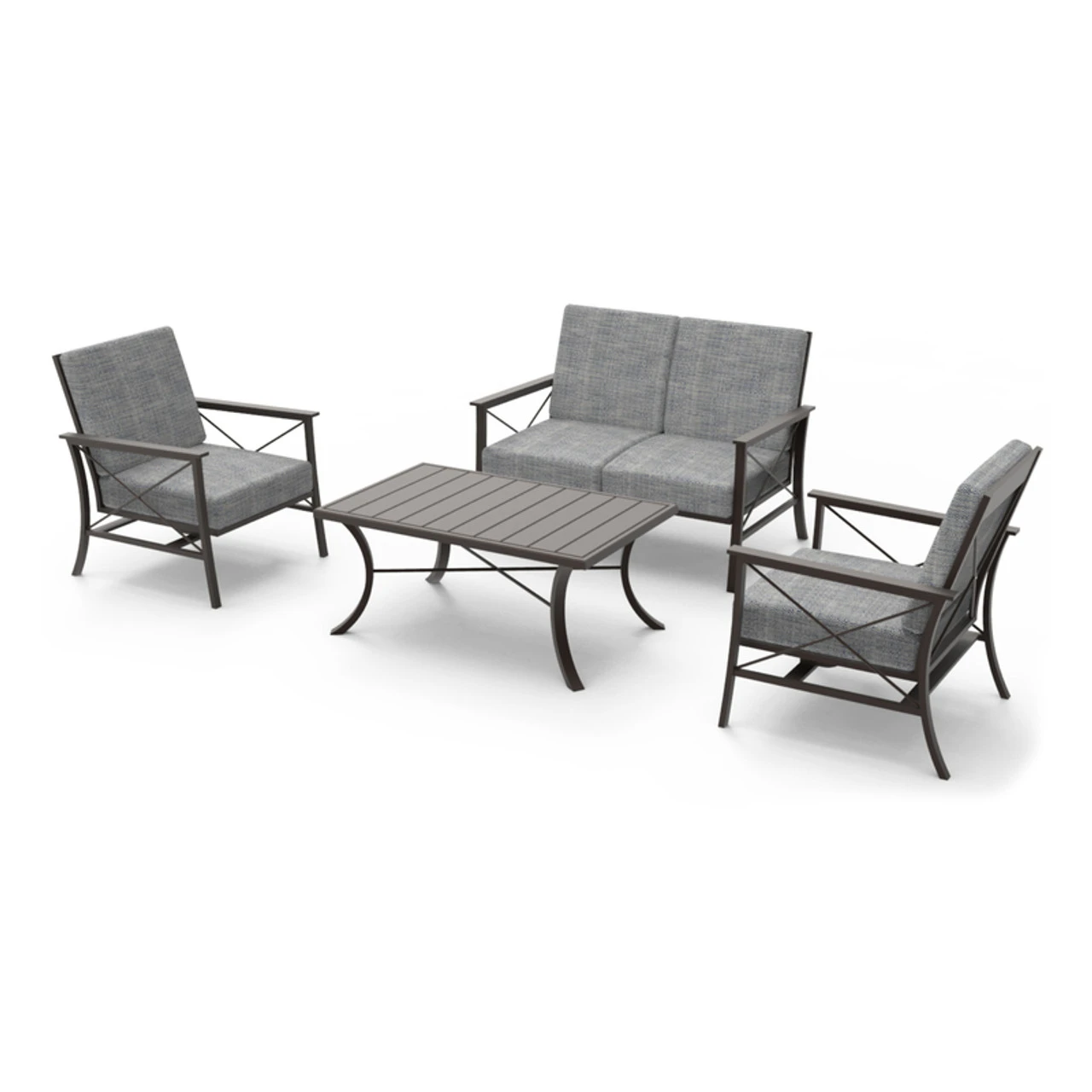 Create an inviting space for comfortable conversation with the Oka 4-Piece deep seating set. One deep-seating loveseat, two matching armchairs and a rectangular coffee table are all included in this set.
