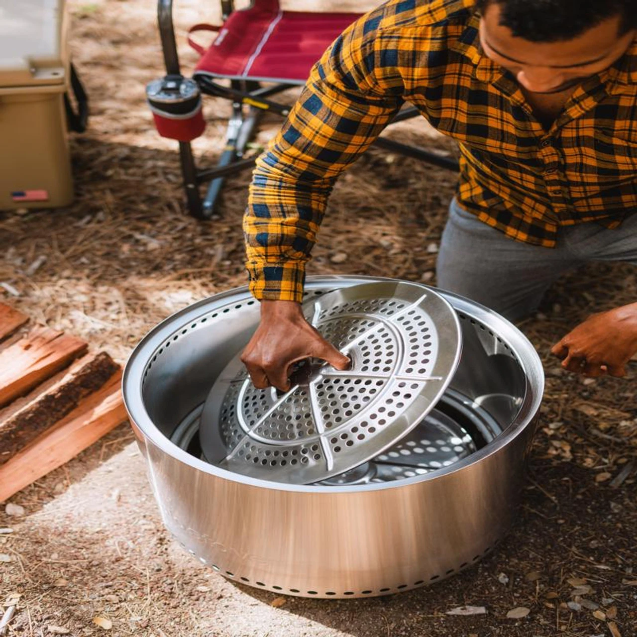 Smokeless Indulge in fireside experiences without the inconvenience of a smoky flame. Our Signature 360 deg. Airflow super-heats air to burn off smoke before it can get to your clothes or hair. And without that pesky post-fire smell, teary eyes, or a game of musical chairs to dodge smoke, you can enjoy ultimate warmth without sacrificing comfort. Ditch the hassle of complicated assembly. Making good moments should always be easy, and our fire pits are designed to deliver. Thanks to 360° Signature Airflow, easily spark up bright flames whether you’re a first-timer or a pro. And just like the start-up, clean-up can be done in a snap. Our new removable ash pan makes getting rid of incinerated leftovers simple so that you can enjoy nights with less mess and more good moments. Weighing in at just over 15 pounds, your fire pit was made to move. Spark up smokeless adventures everywhere you go whether you’re camping, tailgating, partying at the beach, or just redecorating your outdoor oasis, pack up your fire pit in the included carry case and get moving. Your fire pit is ready to go wherever you do. 304 stainless steel is highly durable, surprisingly lightweight and won’t cave under the pressure of an ultra-hot flame. Count on your fire pit to hold up to all of your experiences whether in the backyard, at your team’s tailgate, or in the backcountry. It’ll last a lifetime and we’ve got the warranty to prove it. Maximize your open flame fun with Solo Stove’s ecosystem of accessories. Enjoy added safety with Shield and Stand, a warm night around the fire enhanced by Heat Deflector or your next family cookout on a Cast-Iron Cooktop.