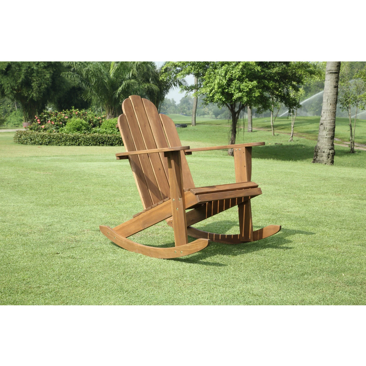 The classic styled Adirondack Rocking Chair is the perfect complement to your outdoor area or pool side. The side armrests and high back provide comfort. Sturdy and durable, the acacia finish allows the piece to easily complement your outdoor space.