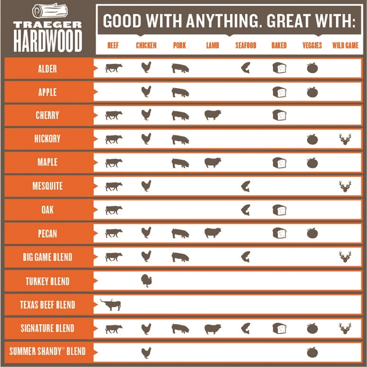- 100% pure hardwood pellets. Real wood, real flavor–every time