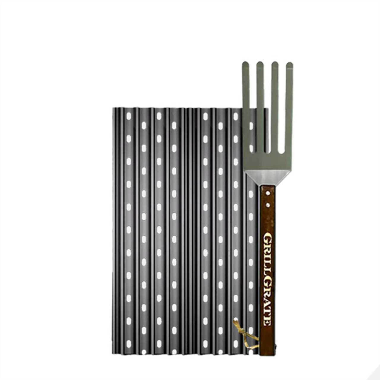 GrillGrates turn pellet smokers into pellet grills. They trap and concentrate heat and conduct it up the rails for great searing while the valleys sizzle juices for added flavor – that’s why we call GrillGrates for pellet grills “sear stations”. Every set comes with a GrateTool which is part fork, part spatula that fits between the rails to get under your food and lift it without scraping.