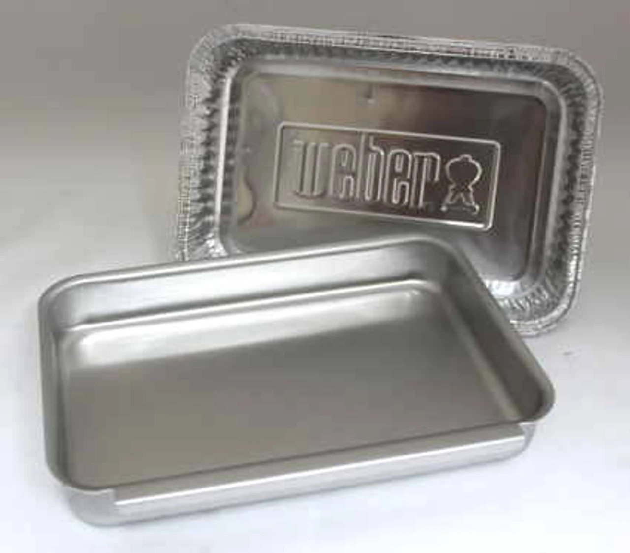 Aluminum grease catch pan with one single disposable foil liner. Pan measures 8-5/8″ long X 6-1/8″ wide (width measurement includes the folded side rail extension). Designed to hold disposable 6″ X 8-1/2″ foil pan liner, which is available in a pack of 10, see Weber part 6415.